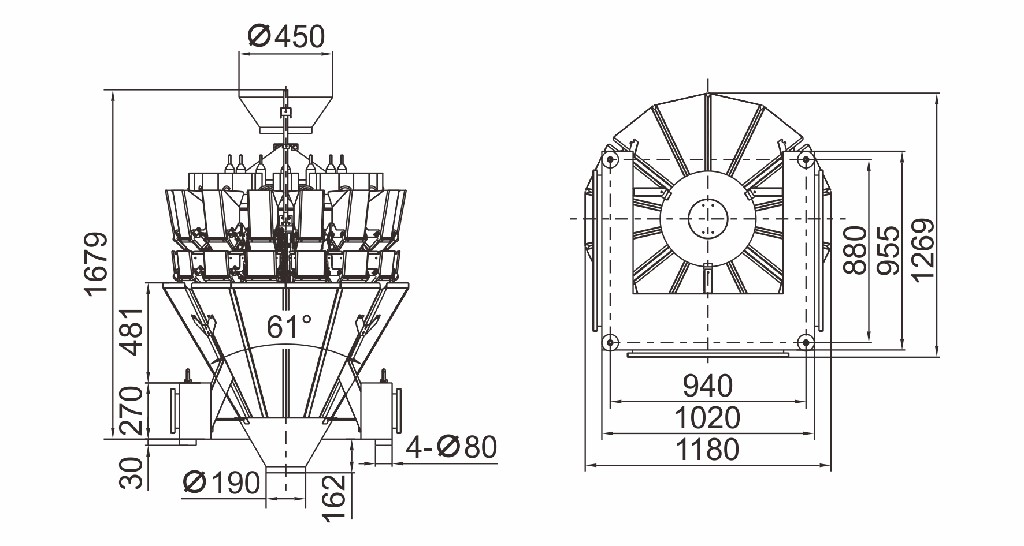 5. IP65 حالة آلة مقاومة للماء ، جزء الاتصال المادي مع لوحة الدمل ، 60 ° شلال التفريغ دع المواد تسقط بسلاسة.