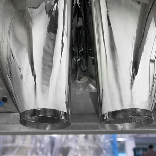 4. Machine frame, discharge chute with compatible design, single discharge chute gate can change to double with twin packaging machine when just one kind of product.