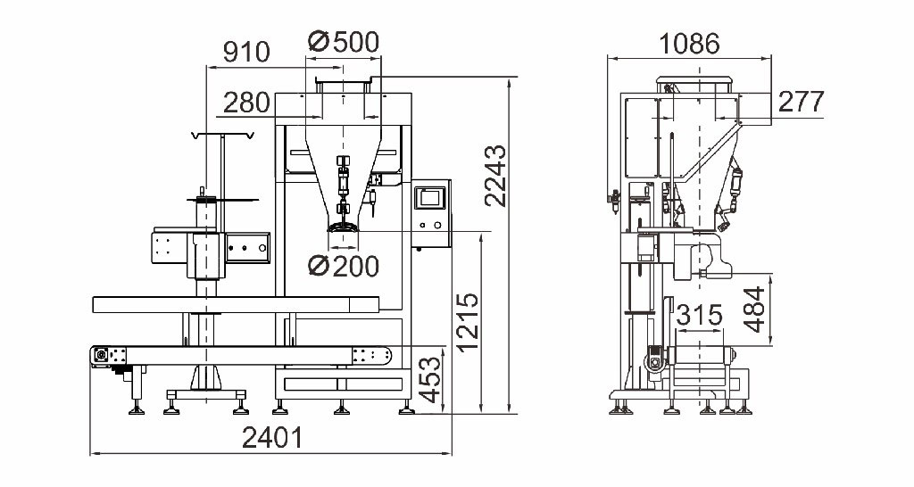 3. Opération facile. L'opérateur peut simplement mettre le sac et toucher l'interrupteur, puis les sacs d'alimentation, de remplissage et de déchargement peuvent être terminés automatiquement.