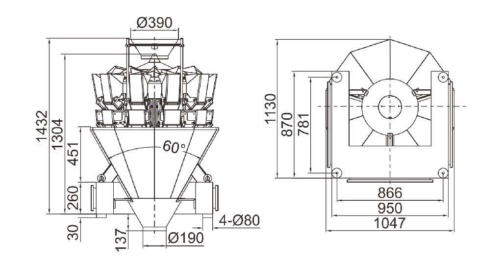 1. Регулируемый верхний роторный конус подходит для подачи различных продуктов.